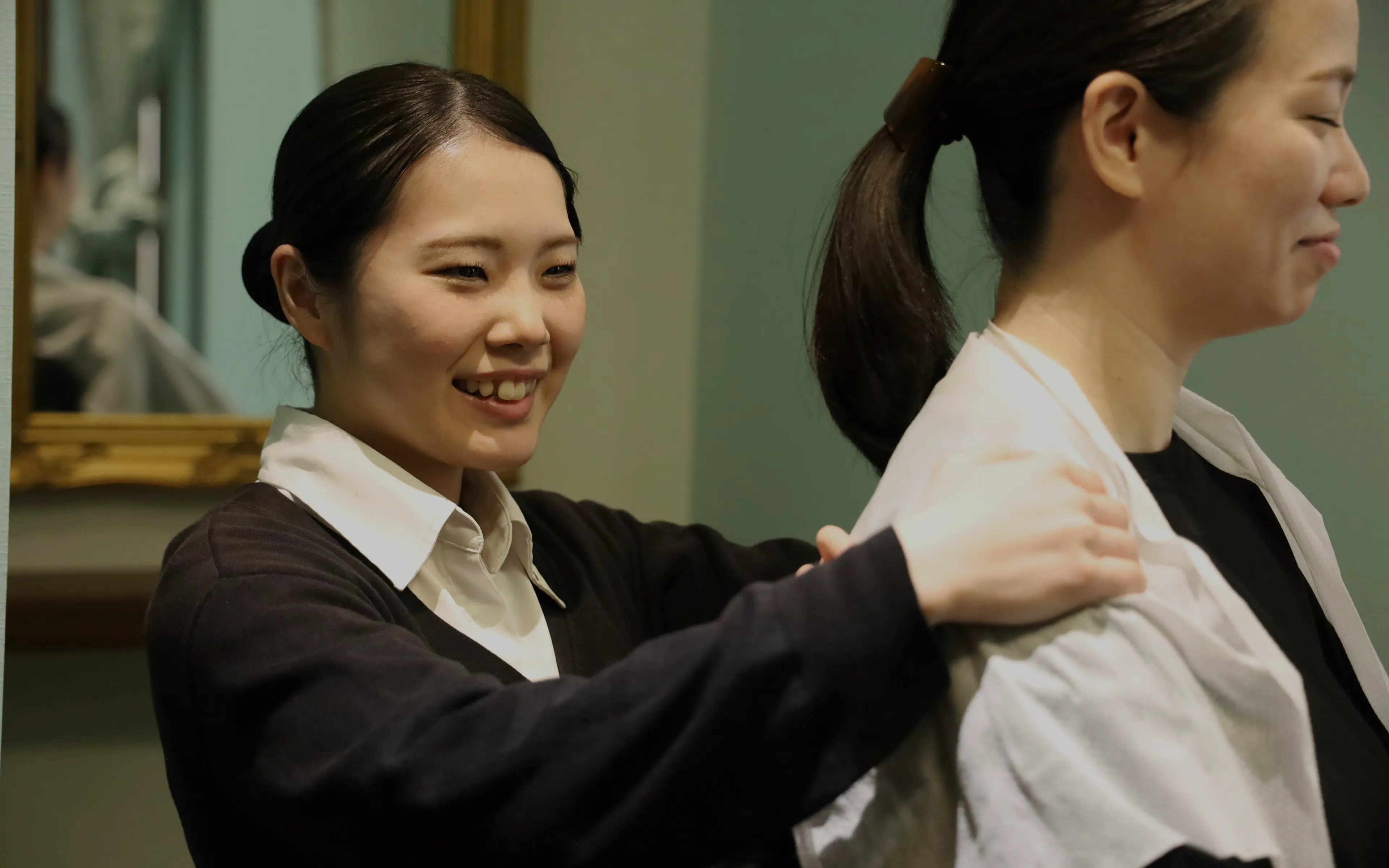 もっとお客様の近くで働きたい。そう思ったときに思い浮かんだのがセラピストという仕事でした。“手に職”の仕事の大変さもありますが、それ以上に毎日が充実しているので、これからもずっとセラピストとしてやっていきたいですね。