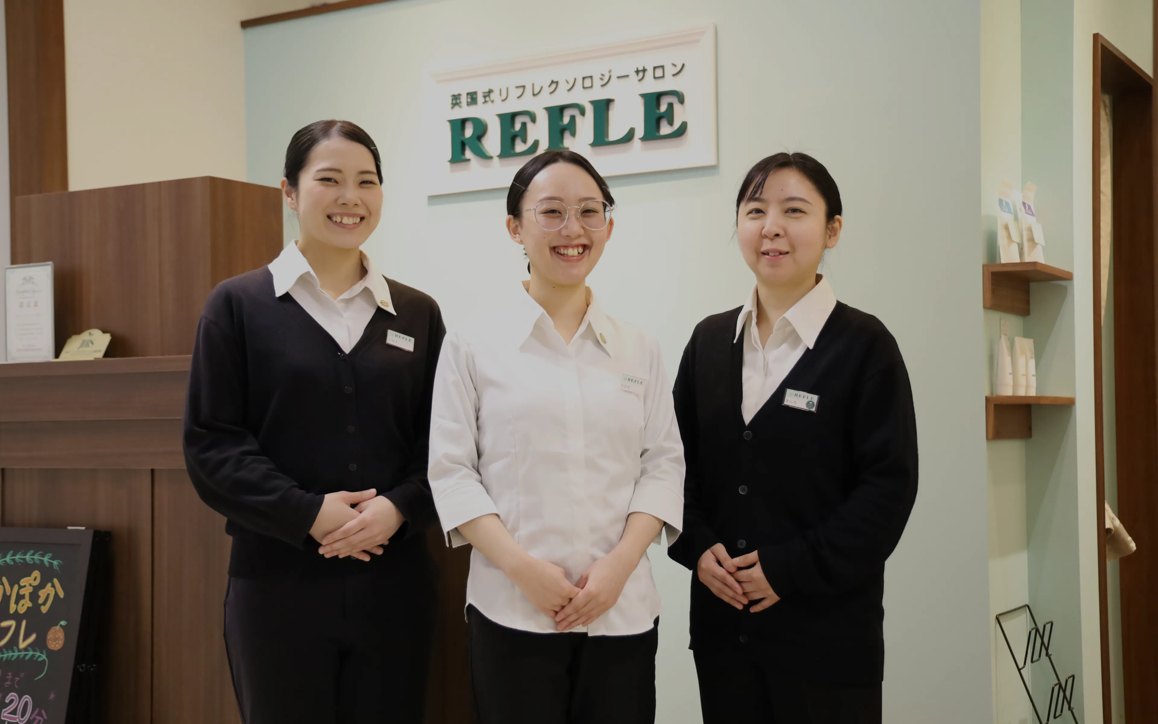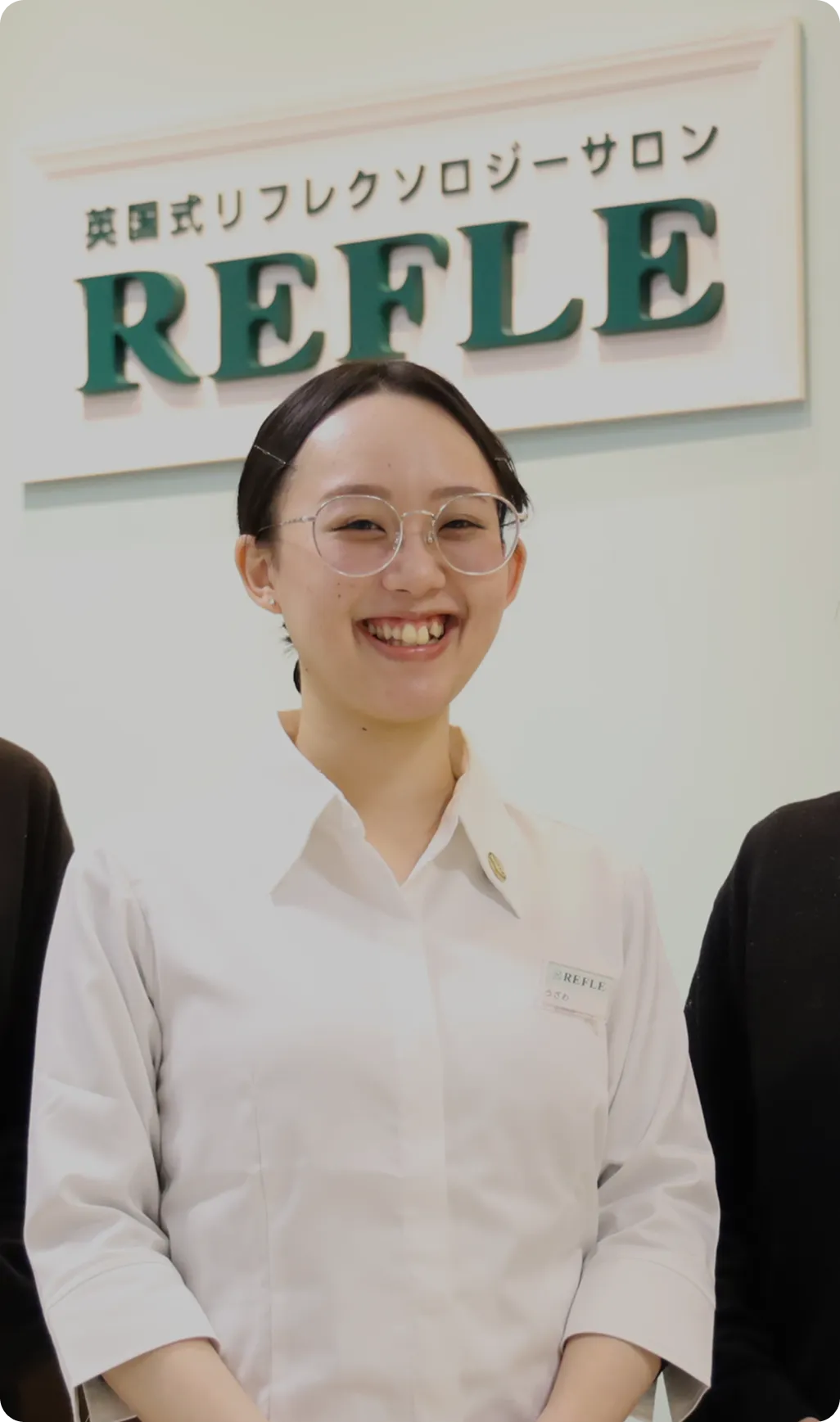 REFLEのセラピストは身体一つで誰かを救うことも、幸せにすることもできる仕事です。「楽になった」「ありがとう」という言葉をいただけるのは、人生においてすごい自信になりました。これからも研鑽を続け、元気なセラピストで居続けたいですね。